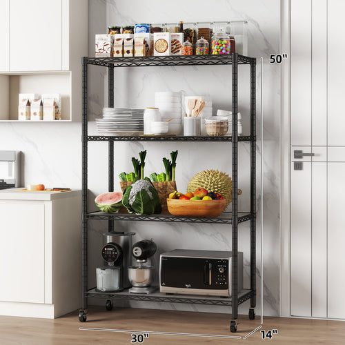 4-Shelf Shelving Units and Storage on Wheels with Shelf Liners Set of 4, NSF Certified, Adjustable Carbon Steel Wire Shelving Unit Rack for Garage, Kitchen, Office(50H X 30W X 14D). item#: 200-4W